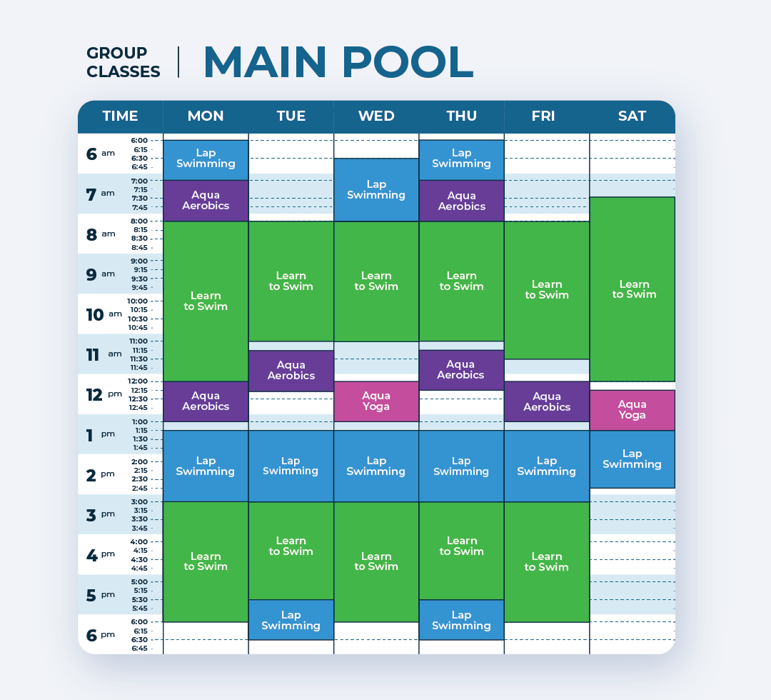 Aqua Aerobics is a low-impact water aerobics, designed for all ages that will help improve muscular tone, cardiorespiratory endurance, fitness and flexibility in a social environment. All classes are 60 minutes long.